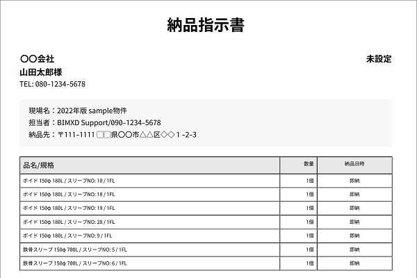 - 発注された部材がいつ届くのか、図面上で確認することができます。部材がいつ届くのかが現場全体で共有できるため、確認作業を削減できます。