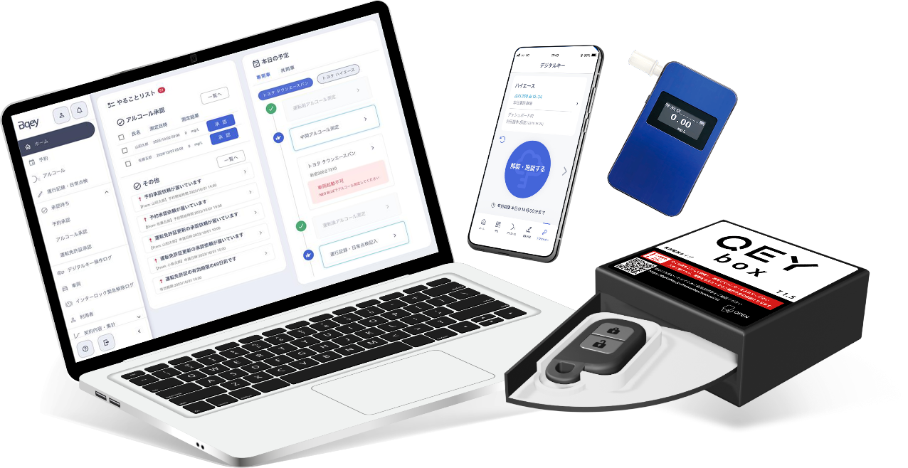 アルコールチェックを実施しないと車の鍵が開かない仕組みなど、アルコールチェック運用を仕組みで支えます。
